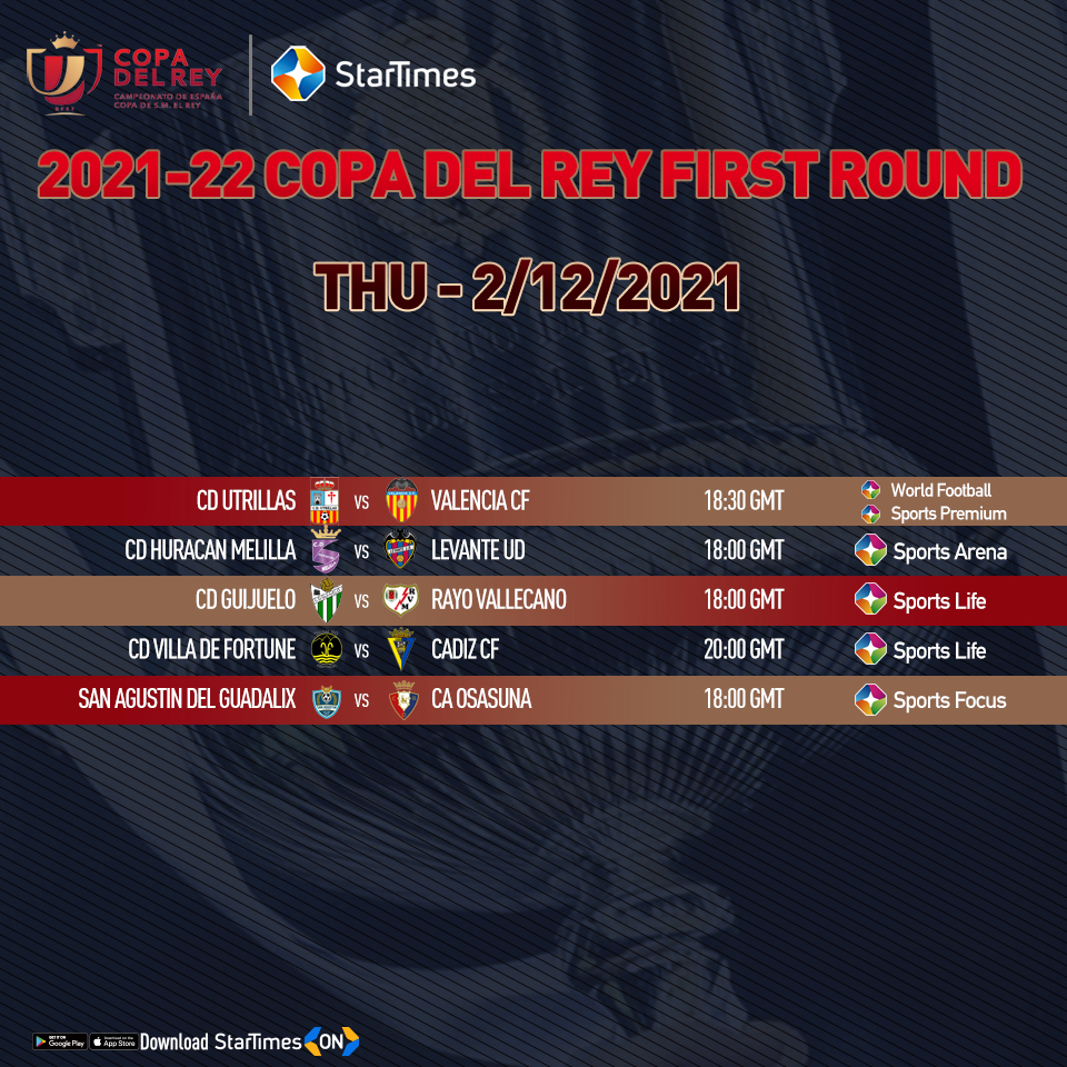 Startimes Kenya On Twitter Matchday Live 2021 22 Copa Del Rey Thursday 2nd Dec Fixtures Your Favourite Spanish Clubs Are In Action For The First Round Of The Copa Del