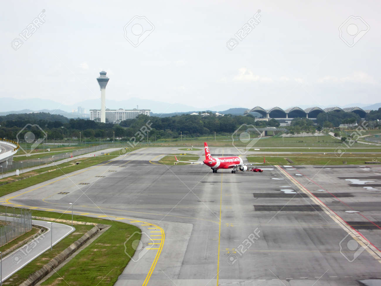 Sepang Selangor Malaysia December 17th 2017 Airbus Plane Own By Airasia Towed And Ready To Take Off At Kuala Lumpur International Airport Klia Stock Photo Picture And Royalty Free Image Image 93672927